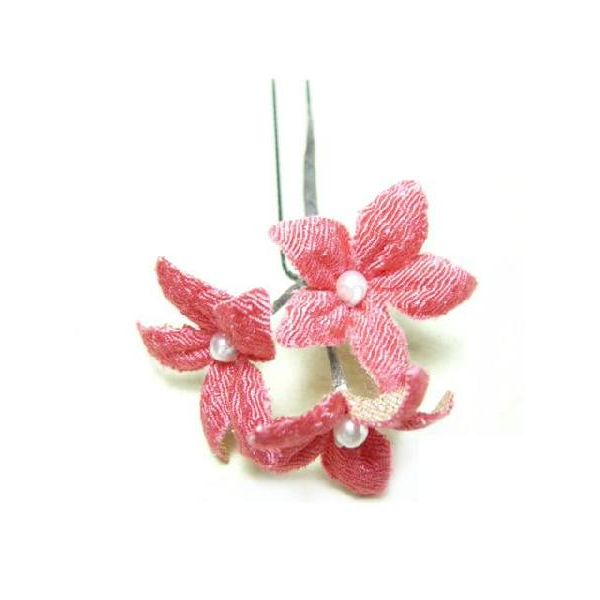 和風髪飾り 【メール便1cm対応】ヘアーアクセサリー◆正月や成人式や七五三・着物に必ずほしい◆和風ちりめん髪飾り オニピン スターの花ピンク3輪 縮緬
