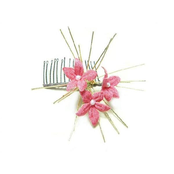 髪飾り 【メール便2cm対応】コーム・ヘアーアクセサリー◆正月や成人式や七五三・結婚式 着物に必ずほしい◆和風縮緬髪飾り コーム小 スターの花ピンクと水引